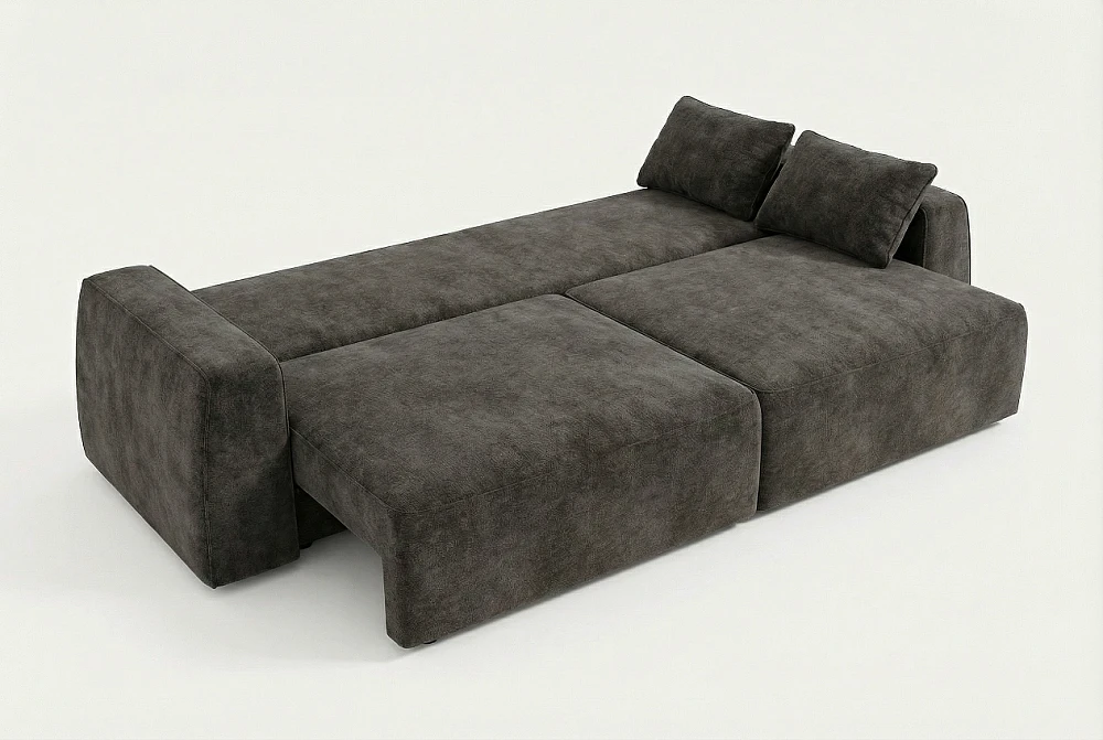 Компактный, с строгим дизайном, прочной износостойкой обивкой темных тонов или из кожи. Часто выбирают модели прямые или угловые без механизма трансформации.