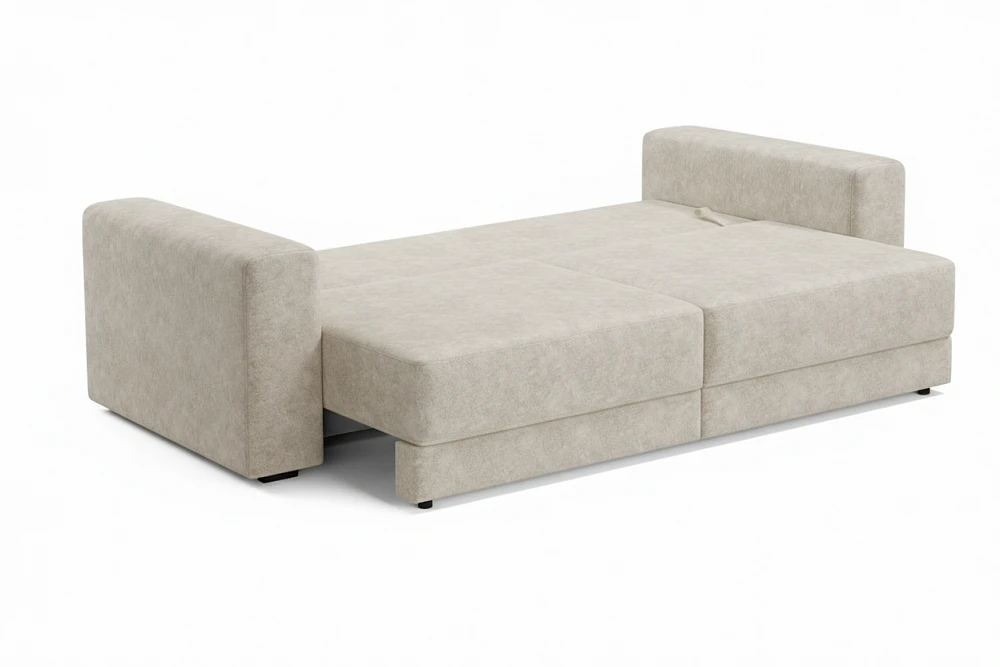 Диван оснащён механизмом трансформации «Еврософа», благодаря которому он легко раскладывается в просторное и ровное спальное место. Подходит для регулярного сна — без перепадов и «провалов».
