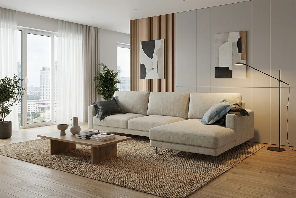 Диван, где лаконичный дизайн сочетается с продуманной функциональностью.