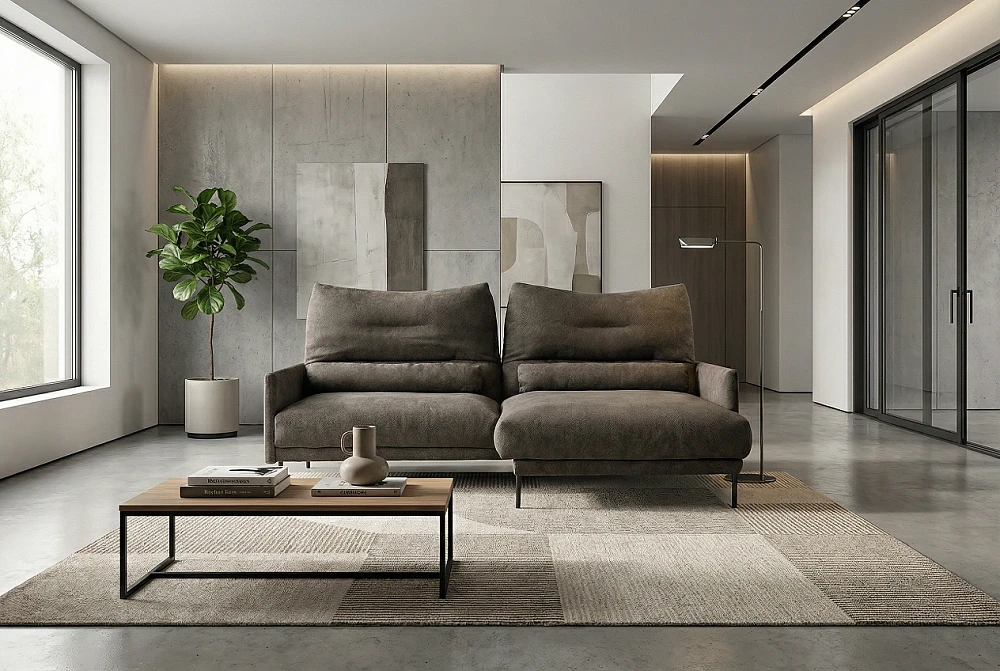 Компактный, с строгим дизайном, прочной износостойкой обивкой темных тонов или из кожи. Часто выбирают модели прямые или угловые без механизма трансформации.