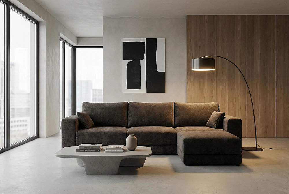 Bavaria с оттоманкой — это максимальный комфорт и масштаб для просторных гостиных. Глубокая посадка, увеличенная длина и удобная оттоманка создают полноценную зону отдыха для всей семьи — как для ежедневного использования, так и для приёма гостей.