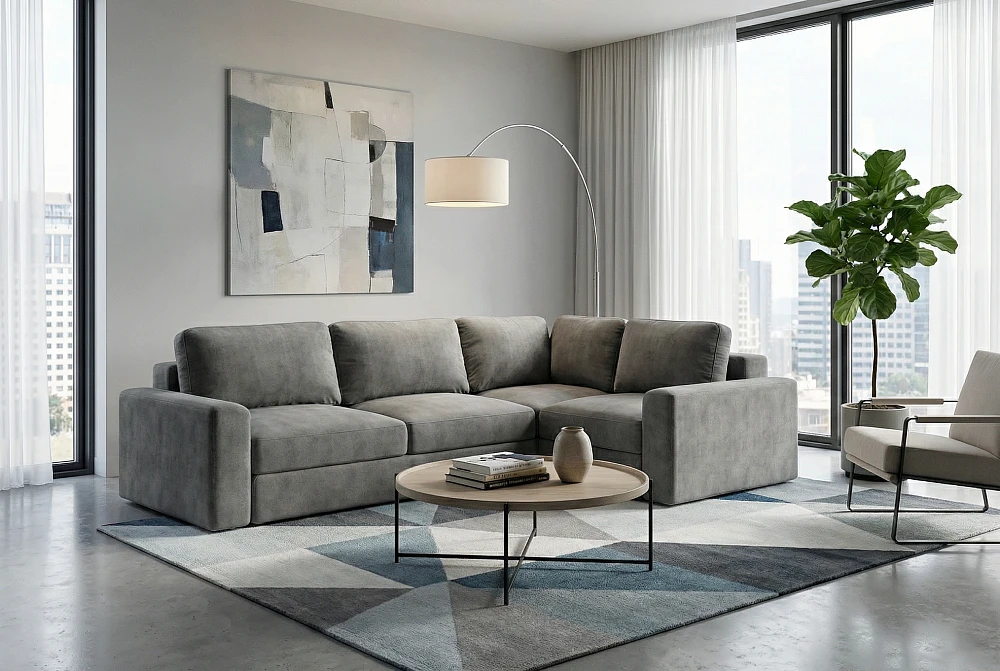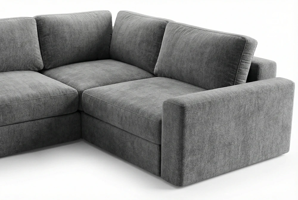 Комфортная глубокая посадка приглашает расслабиться, а оттоманка создаёт дополнительное пространство для отдыха и лёгкого домашнего расслабления.