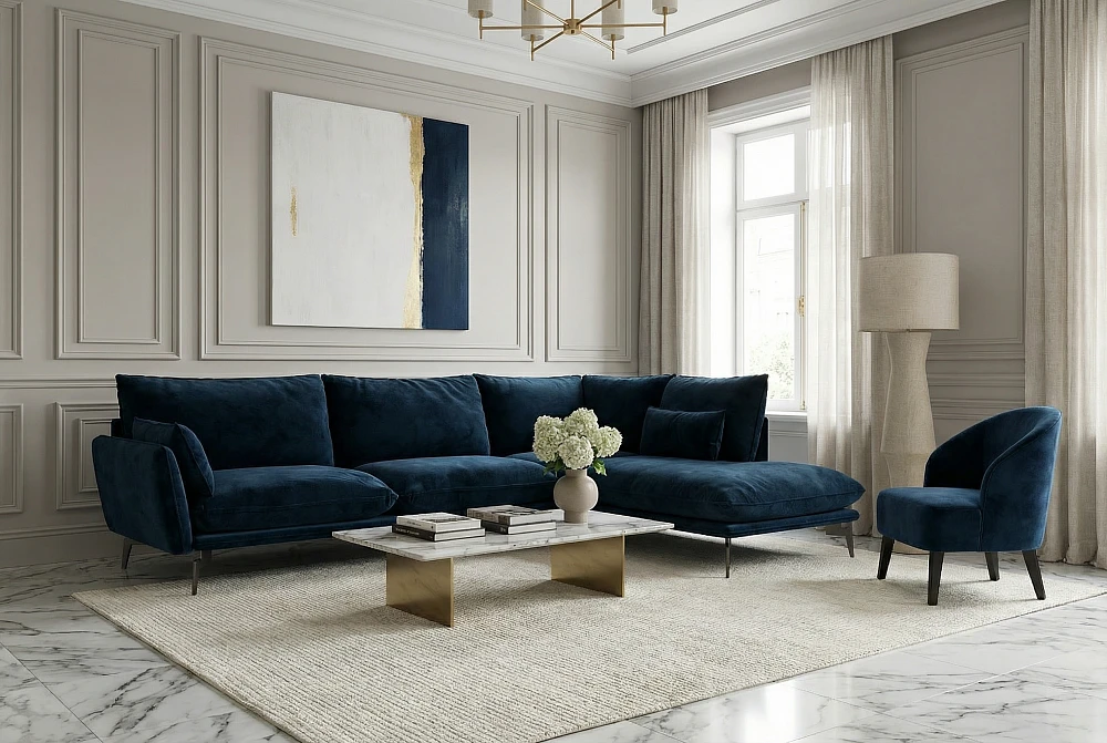 Ориентируйтесь на стиль комнаты: в классику — мягкие формы и велюр, в минимализм — чистые линии и ткань без фактуры, в лофт — металл и кожа.