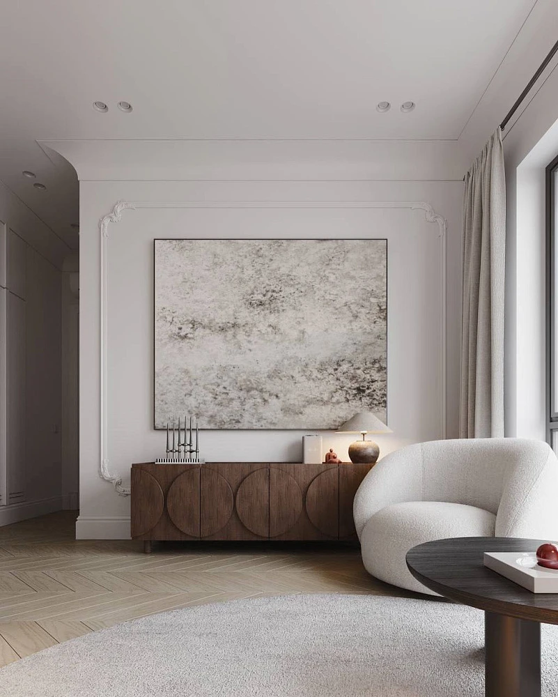 Ориентируйтесь на стиль комнаты: в классику — мягкие формы и велюр, в минимализм — чистые линии и ткань без фактуры, в лофт — металл и кожа.
