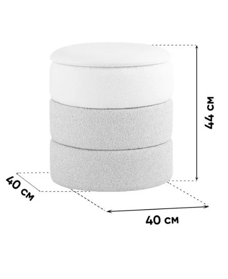 Изящная модель пуфа в мягкой обивке из ткани букле, которая дополнит интерьер в современном стиле. Обивка украшена горизонтальной строчкой для придания большей мягкости и уюта. Под сидением имеется ящик для хранения различных мелочей. В основании предусмотрены специальные подпятники, которые делают пуф более устойчивым и предотвращают скольжение.