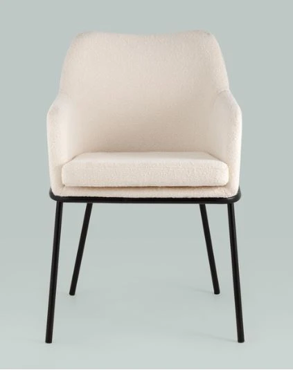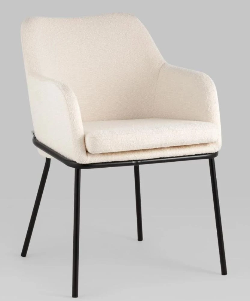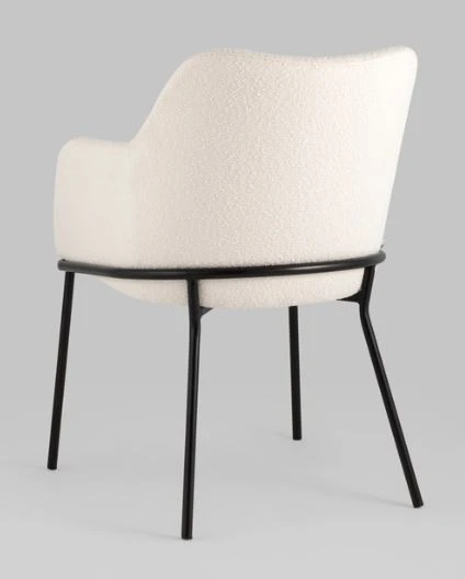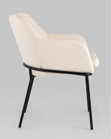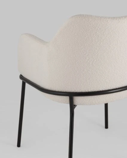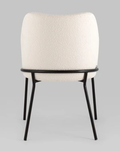Изящный стул с комфортным сиденьем и спинкой. Основание и ножки черного матового цвета изготовлены из прочного металла. Обивка выполнена из прочной ткани с мягким ворсом в стиле букле, необычная фактура и мягкость добавляют стулу больше уюта.
