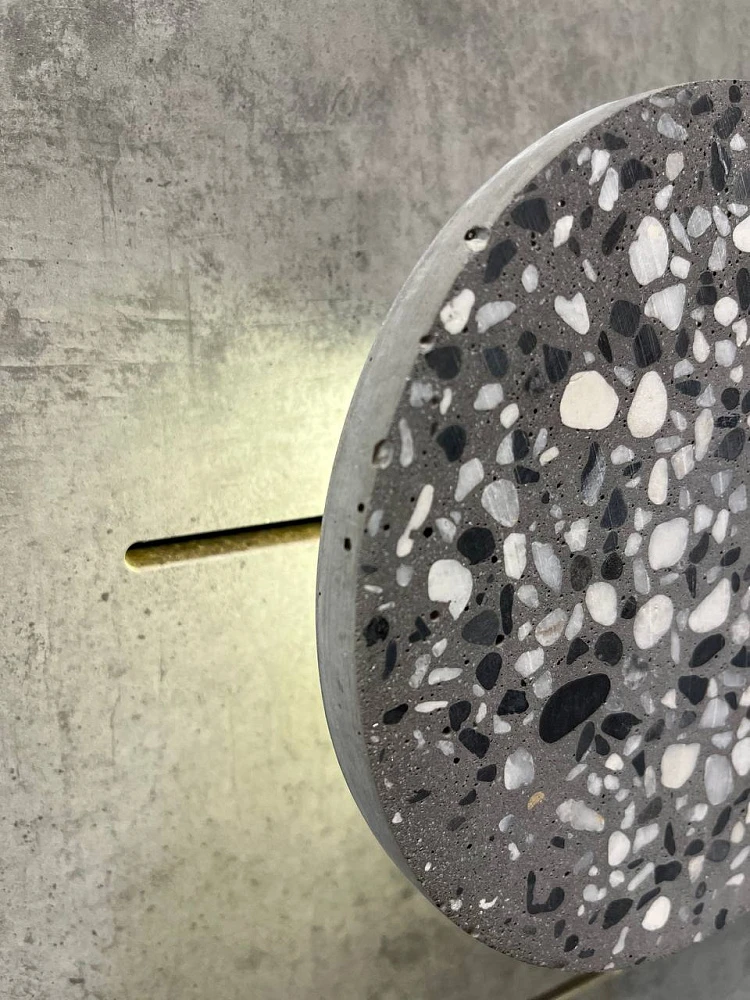 Круглые бра в темно-сером цвете с цветными вкраплениями. Стильная и плавная модель из капсульной коллекции Milosh Tendence. Основа бра выполнена из цемента в стиле тераццо.