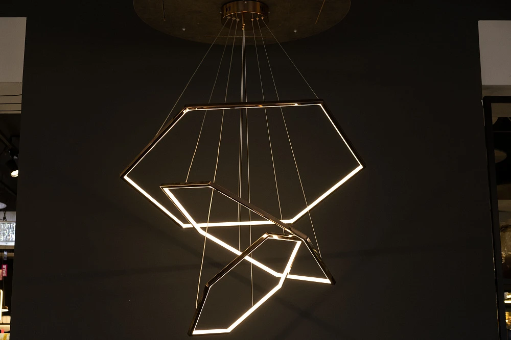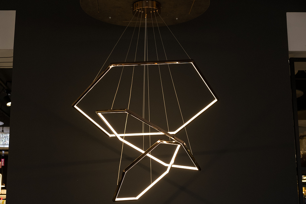Эта люстра — трансформер. Можно соединить три модели разных диаметров в одну конструкцию. Либо разместить их поодиночке.