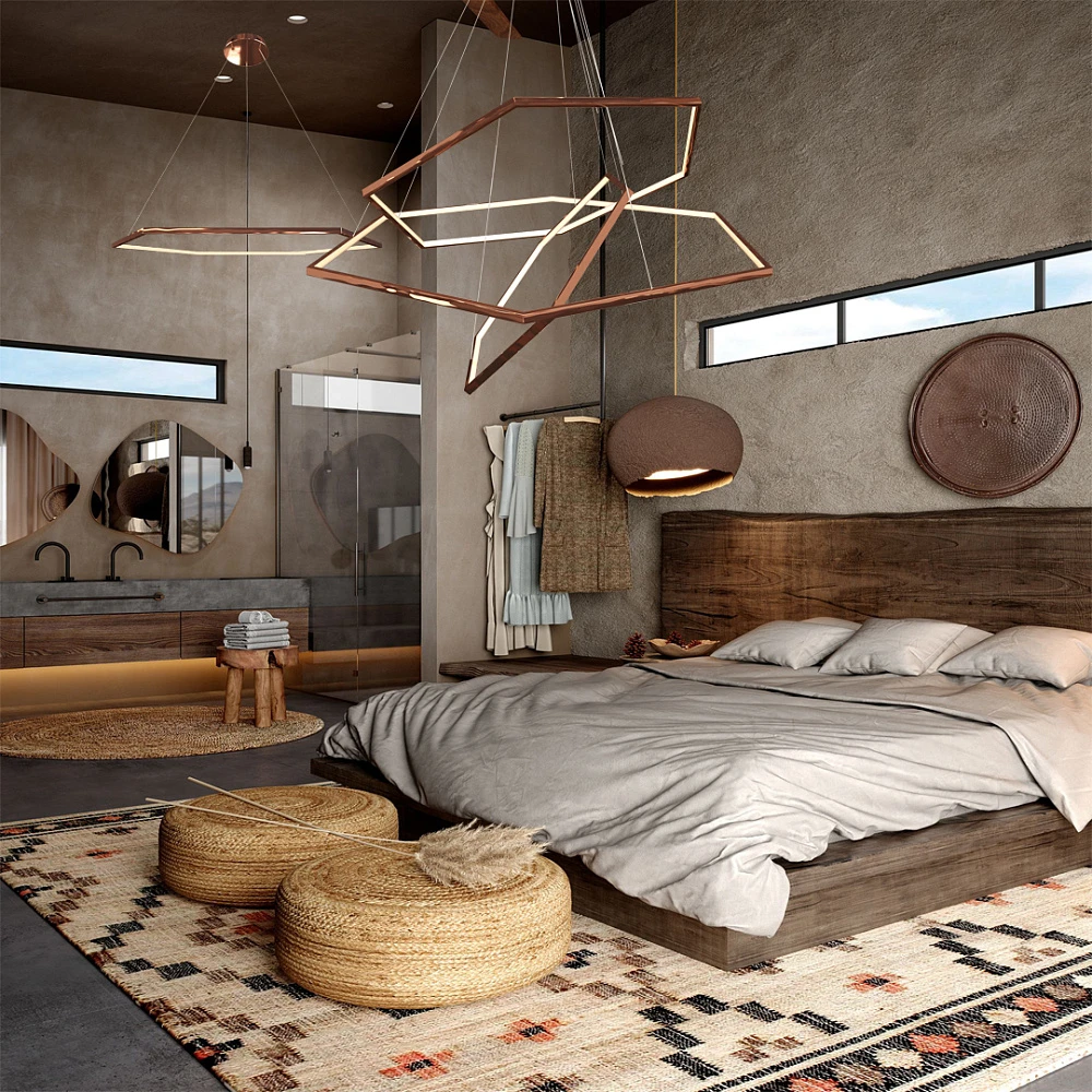 Светодиодная люстра в цвете розовое золото подойдет в гостиную, спальню или на кухню.
