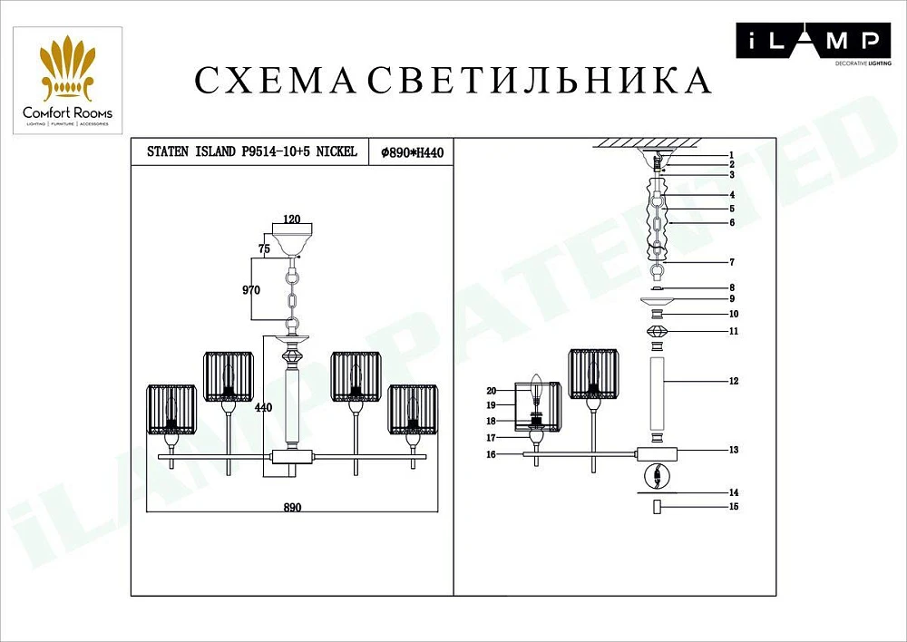 Подвесная люстра iLamp Staten P9514-10+5 NIC Подвесная люстра iLamp Staten P9514-10+5 NIC