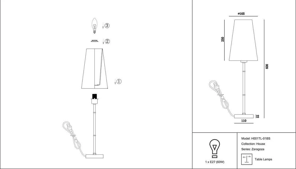 Настольная лампа Maytoni Zaragoza H001TL-01BS Настольная лампа Maytoni Zaragoza H001TL-01BS
