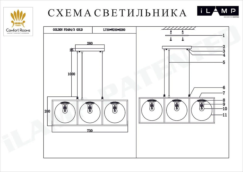 Отзывы о Подвесной светильник iLamp Golden P2484-3 GOLD