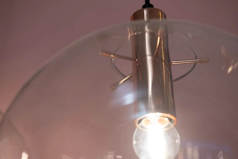 Круглый стеклянный подвес с фурнитурой в цвете розовое золото.