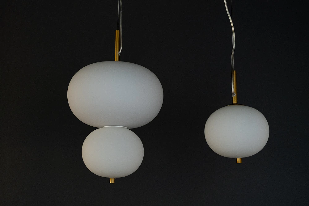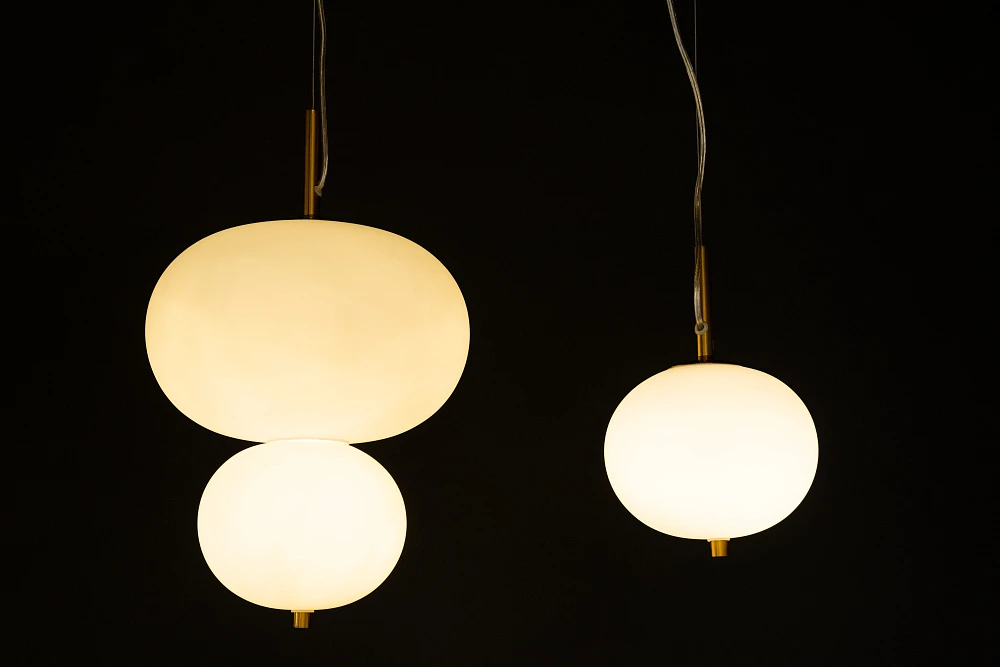 Выдувные шары из опалового белого стекла распространяют чувственный свет, создающий теплую и естественную атмосферу.
