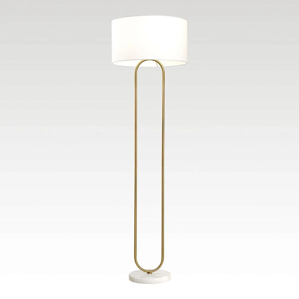 Металл, стекло, минимализм и чистая геометрия — тренд №1. Чёрный, латунный или белый торшер без лишних деталей всегда выглядит актуально.